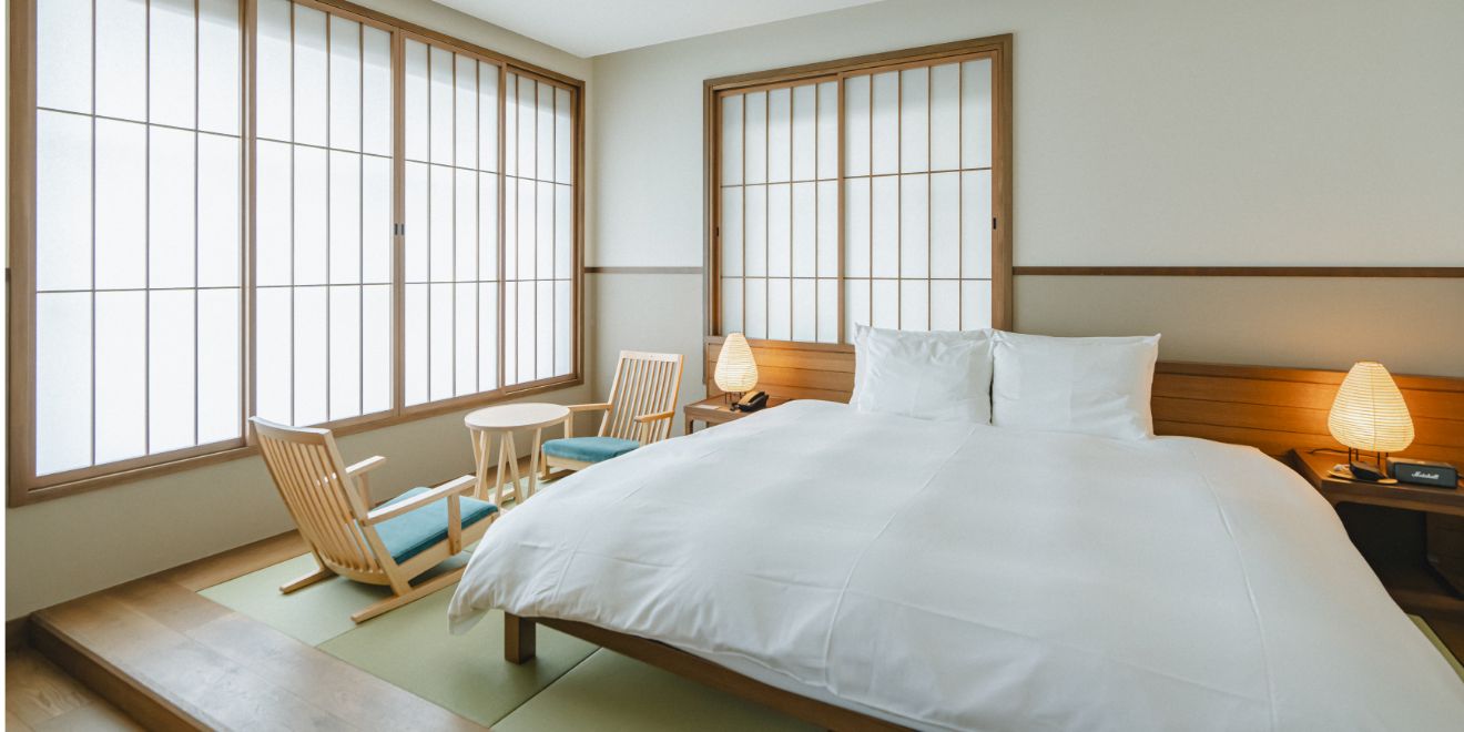 ジャパニーズジュニアスイート既存棟の2階に佇み、最も広いバスルームを備えたジャパニーズジュニアスイート。